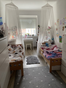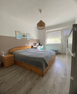 A felső szinten helyezkednek el a háló helyiségek, egy 5 m2 alapterületű erkély, valamint a nagy fürdőszoba ( a fürdő modernizálása még elmaradt).
