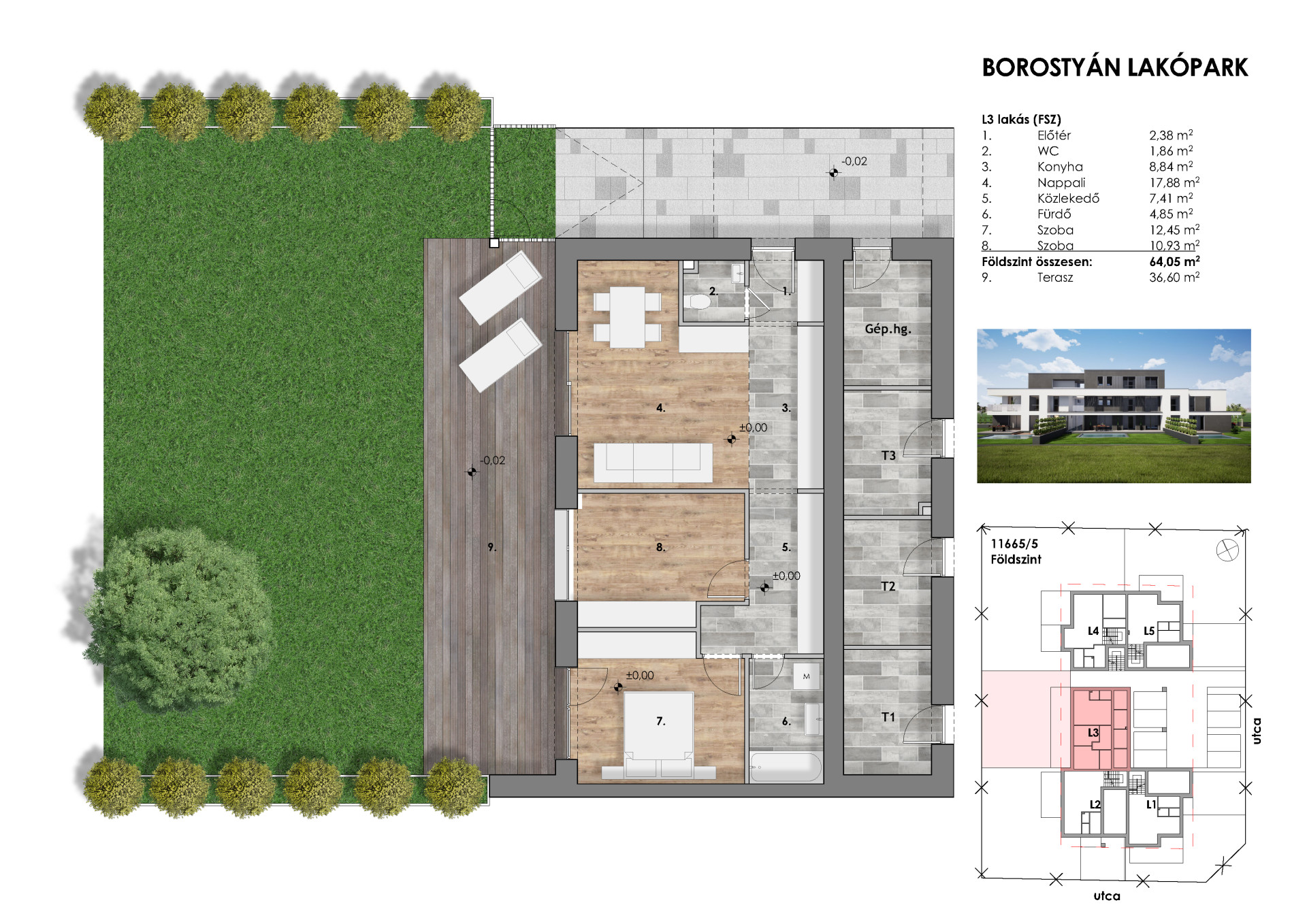 L3 – lakás alapterülete 76 nm – földszint - kertkapcsolatos