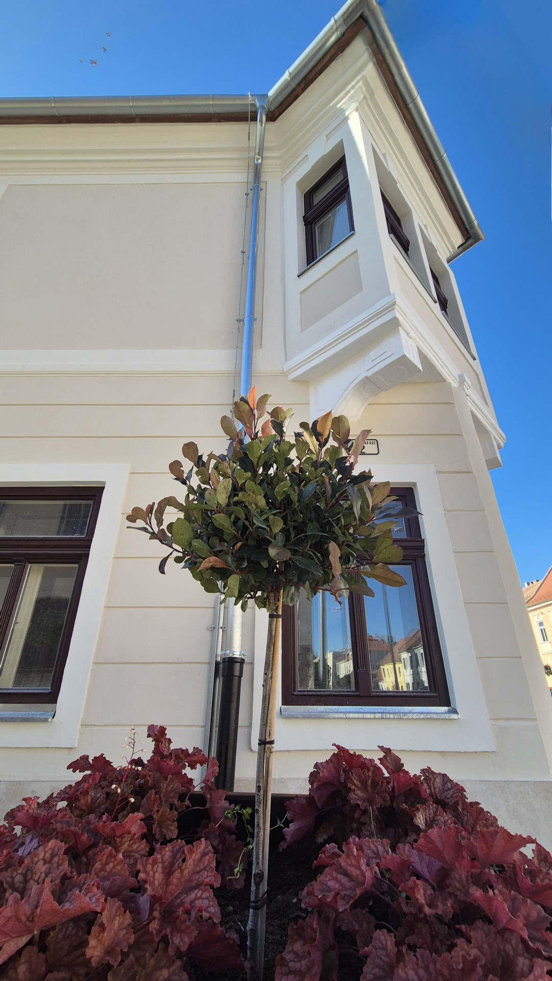 A társasház saroktelken álló, nyeregtetős, két emeletes lakóház, mely elegánsan illeszkedik a városi miliőbe, megőrizve a történelmi értékeket, miközben modern életvitelre nyújt kiváló lehetőséget.