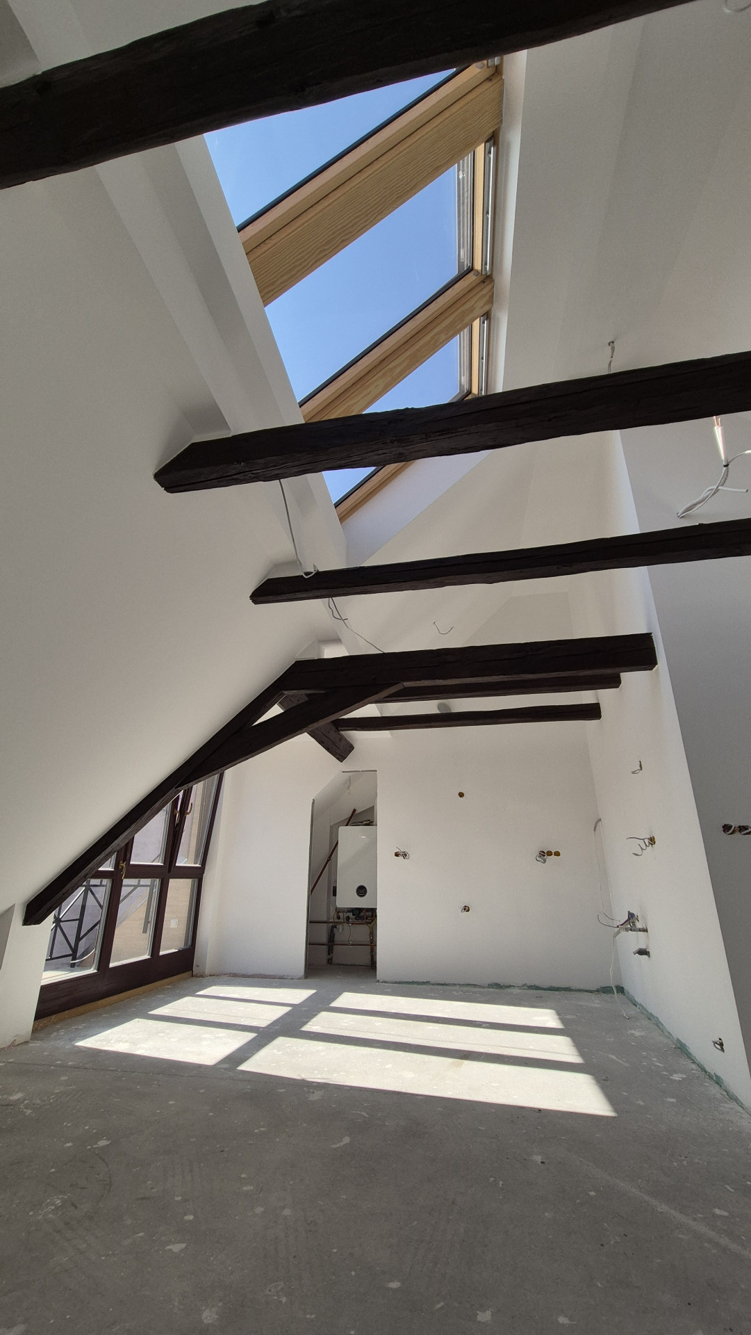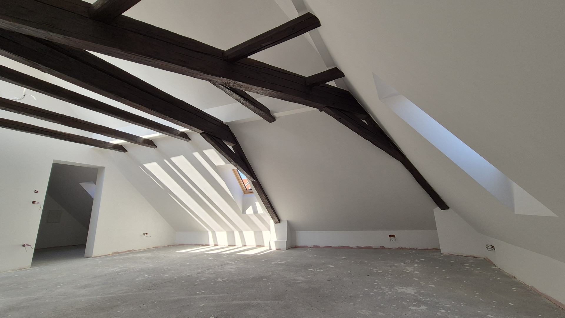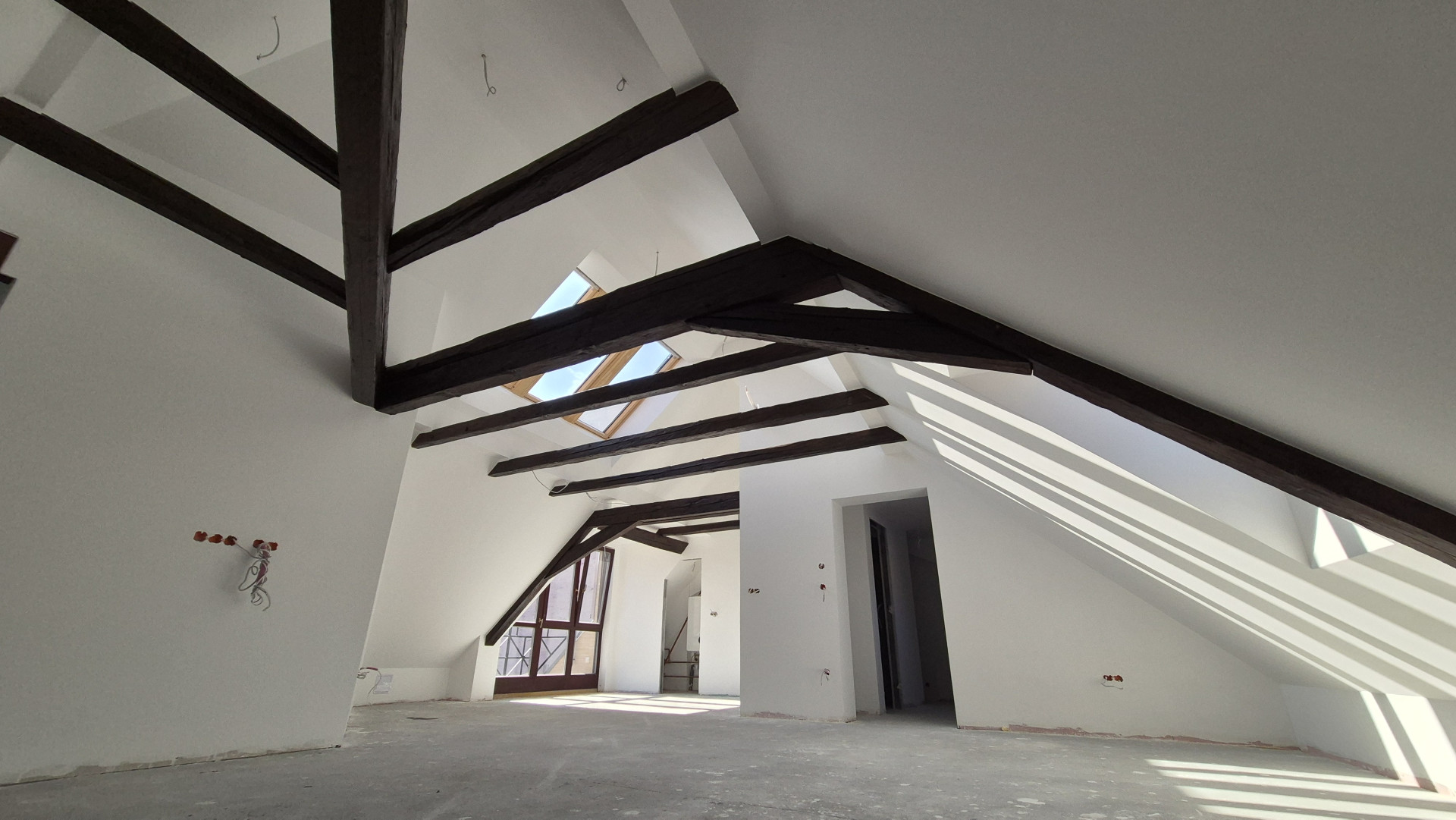 A nyeregtető páratlan adottságait kihasználva alapterülete bruttó 110,1 m2 melyhez 3,98 m2 tetőterasz kapcsolódik.